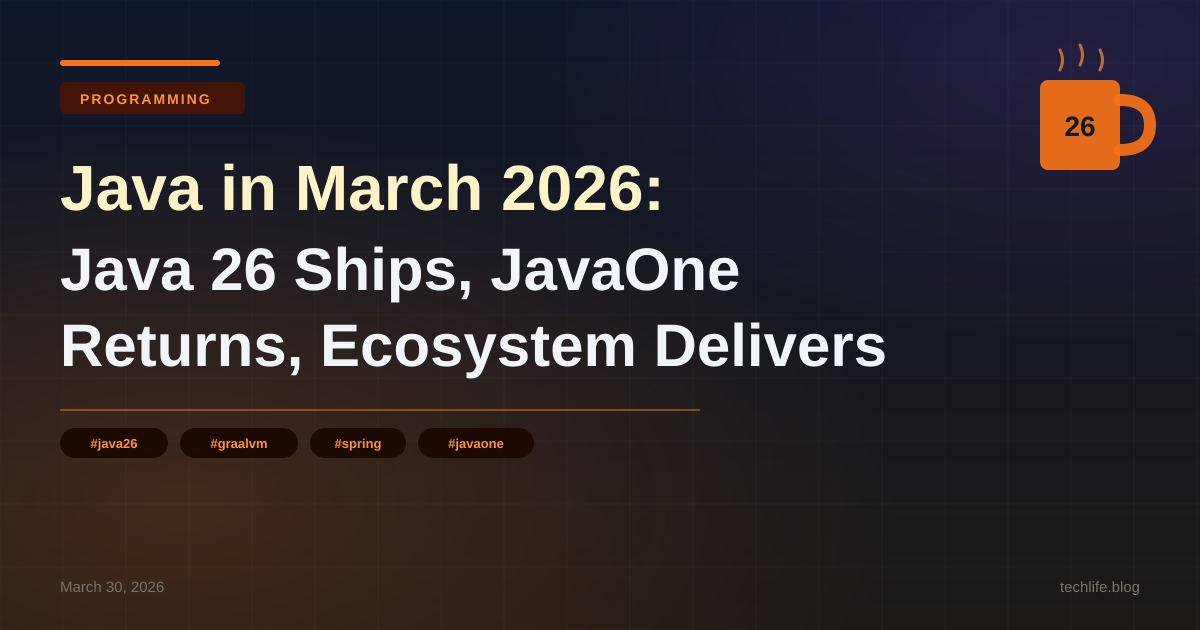 March 2026 is the biggest month on the Java calendar. Java 26 shipped. JavaOne came back. The ecosystem delivered a stack of framework releases. Here’s everything that matters.